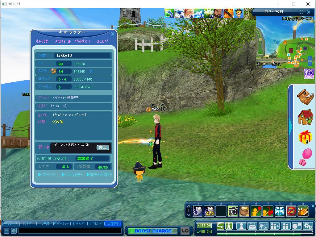 | タッキーLv80(節目)アップおめでとぅ( ・∀・ノノ゙☆パチパチ |