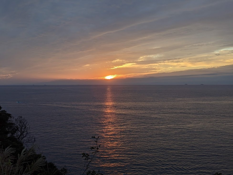 大房岬キャンプ場の展望台から見える浦賀水道越しに見た夕日。