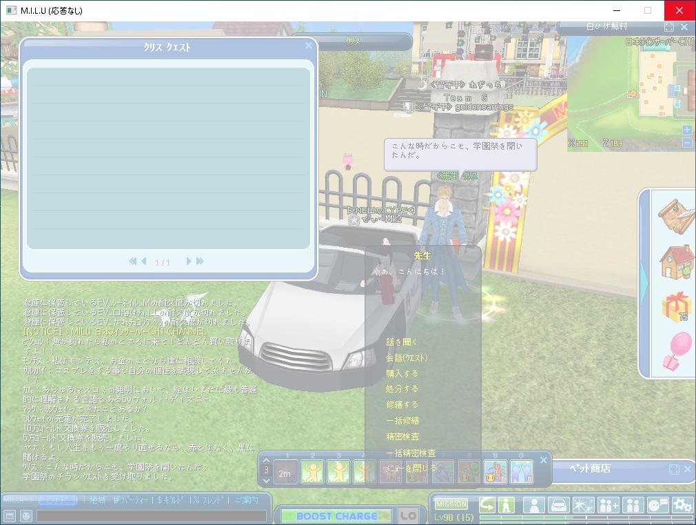 クエ受けようとミルスクの校門で立っているNPCに話しかけた後こうなりましたw