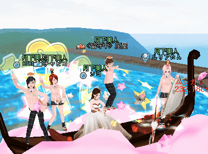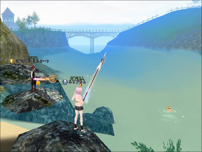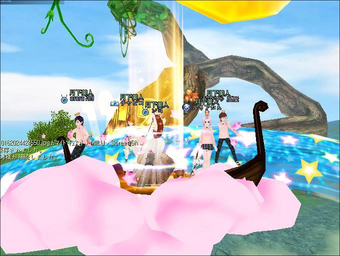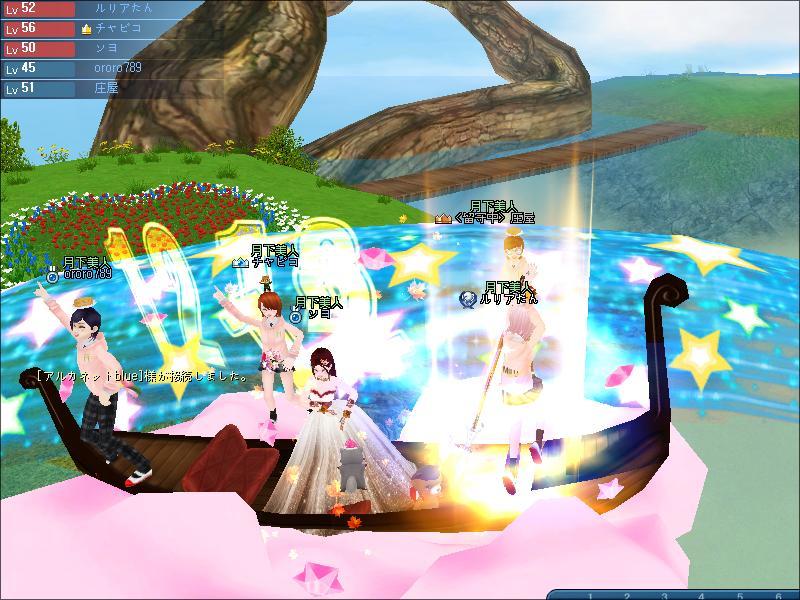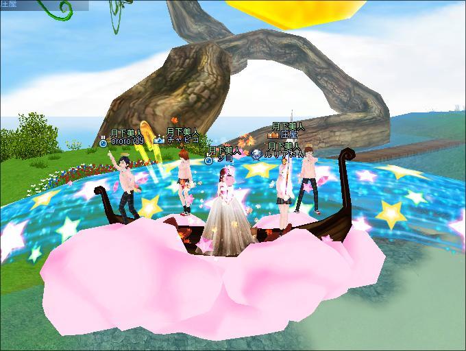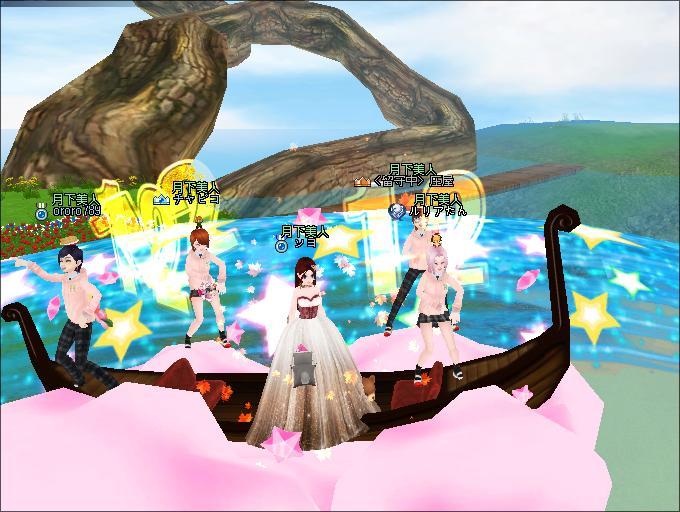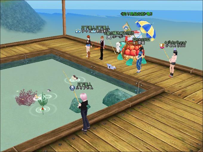 夜、ギルドメンバーさんと釣りをしたわ。ソヨさんがUP間近だとおっしゃるので、みんなでUP式会場へ。