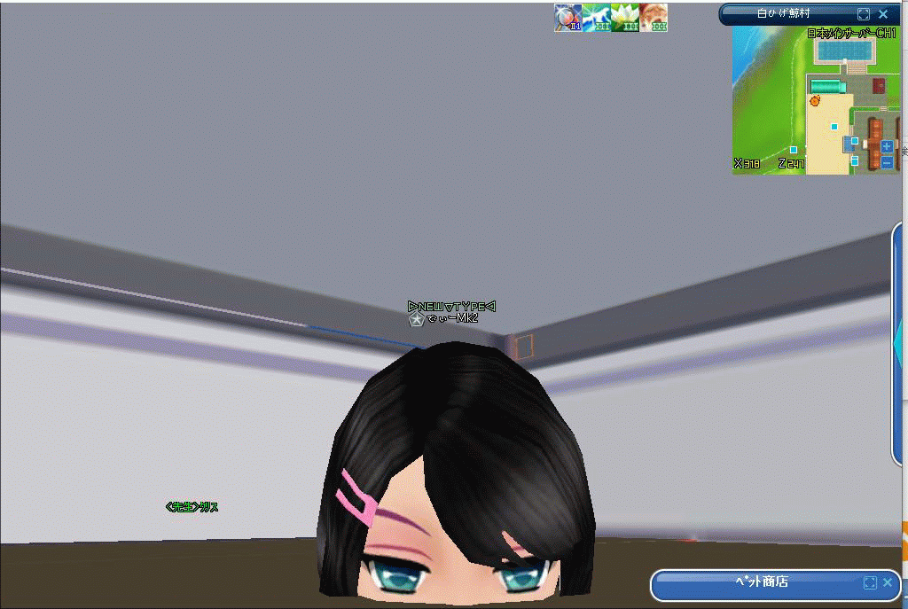 カメラアングル変えたら頭半分がこの様に天井の内側に飛び出ております…w