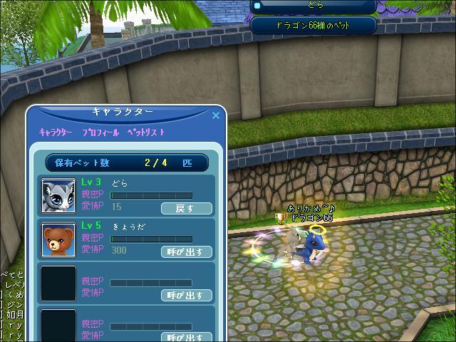 ペットのどらがレベル3にUPおめでとうございますしましたー