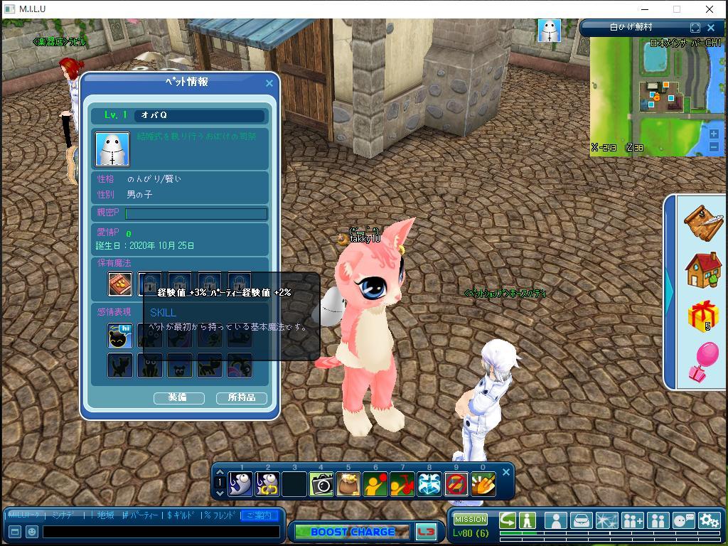 「パーティー経験値 +2%」を持ったペットを狙い上陸しましたw