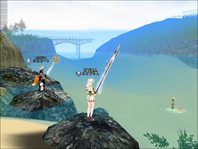 夜、ギルメンさんと釣りをしたわ。