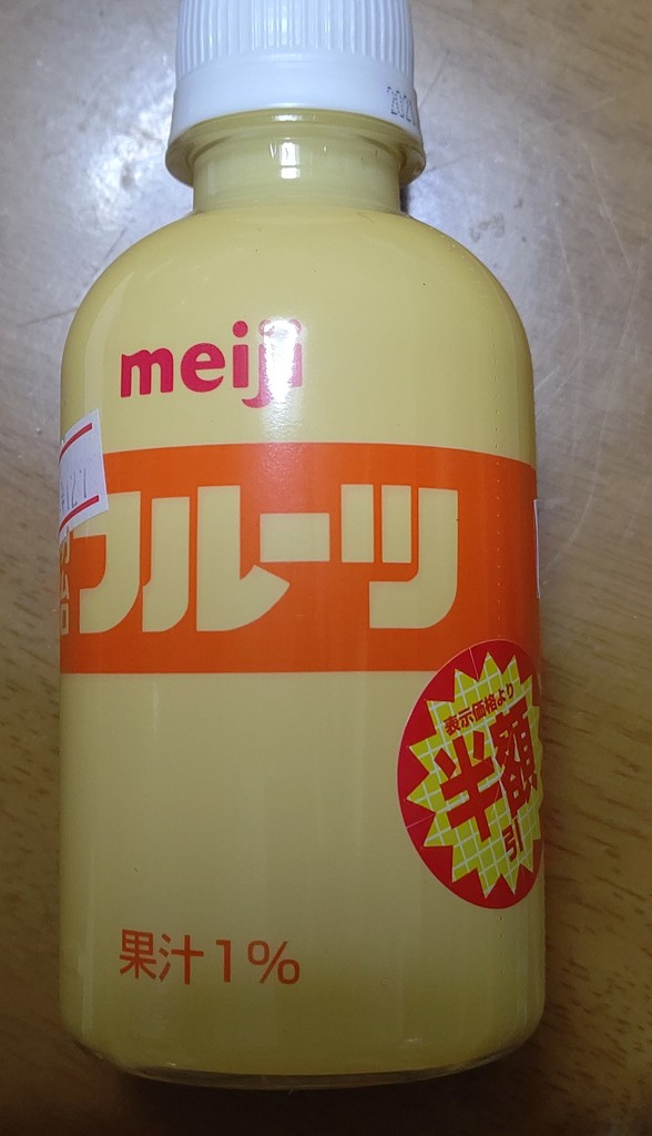 久々の半これ!!以前日記で取り上げたフルーツ牛乳、半額でGet!!終売が惜しまれる(´;ω;`)