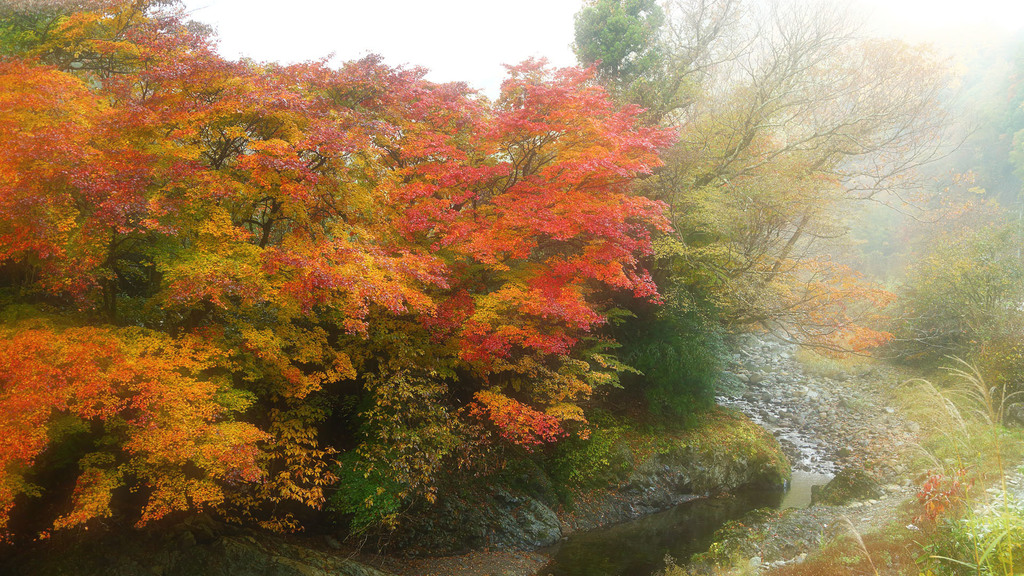 これまた、もやの中の紅葉。