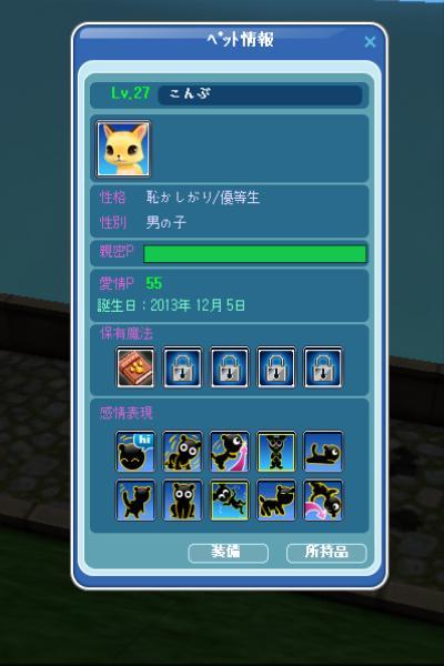ペットもアップしましたーー^^ ”こんぶ”こときつねがLv27に所持品枠が40に拡大^^