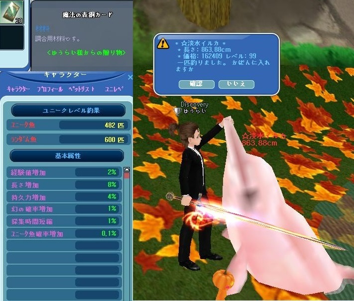 | 通算600匹おめでとおお!!! ランダム魚釣ってカードももらえるのか!! レべ70、早くなりたーーいw |