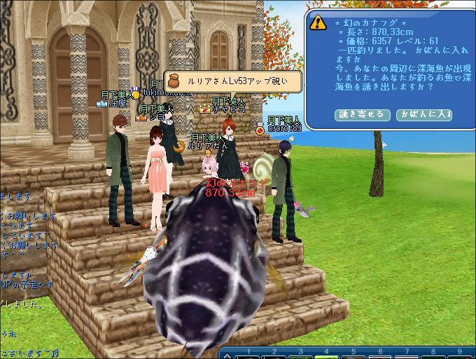 夜、ギルドメンバーさんと釣りをしたわ。