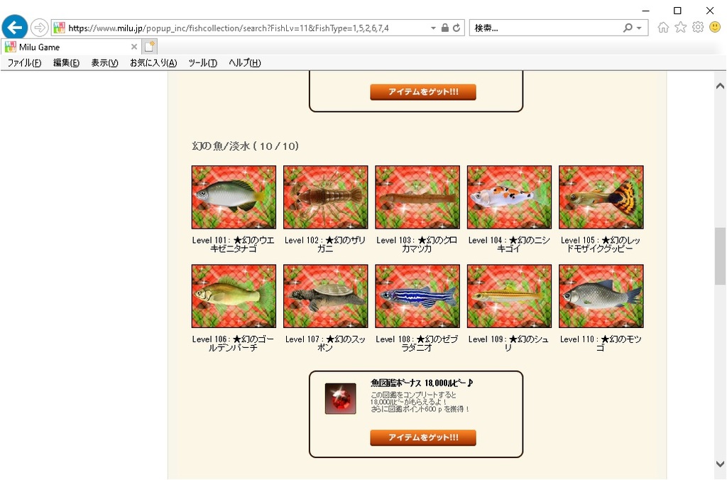 幻の魚/淡水の魚図鑑ボーナス18,000ルビー♪