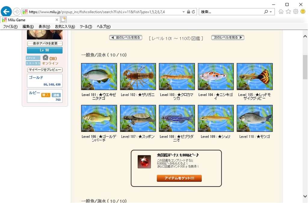 一般魚/淡水の魚図鑑ボーナス 9,000ルビー♪