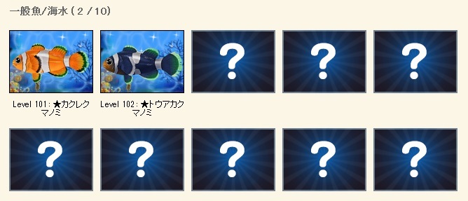 | 100レベル以上の魚図鑑でするーw |