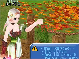 ルビー餌で下3桁奇数ぞろ目のレア魚の抹茶たい焼きフィッシュが釣れた^^