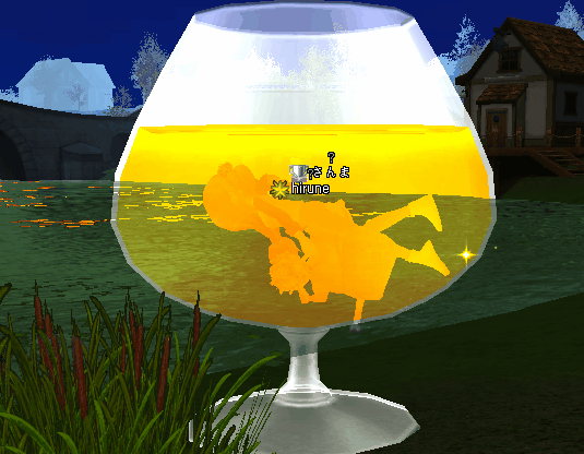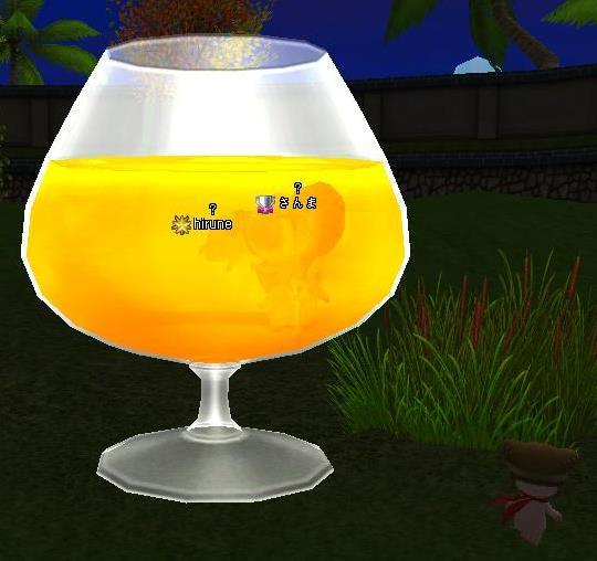 | クエお疲れさまぁー!(。・д・。)ノシ オレンジジュースで泳ぐなんて夢のようだww |