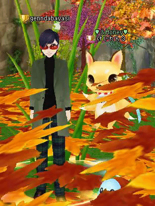 忙しい猪鹿 蝶太郎に変身した源さんの横で紅葉の中…踊りまくり(*^^)v