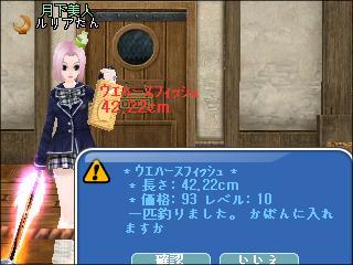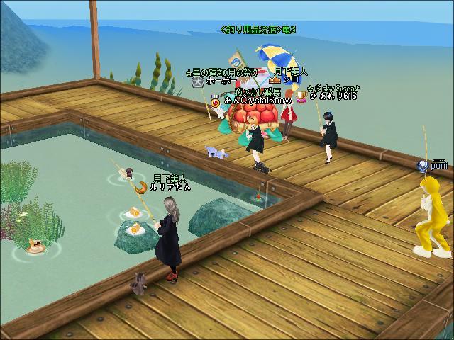 夜、ギルドメンバーと釣りをしたわ。