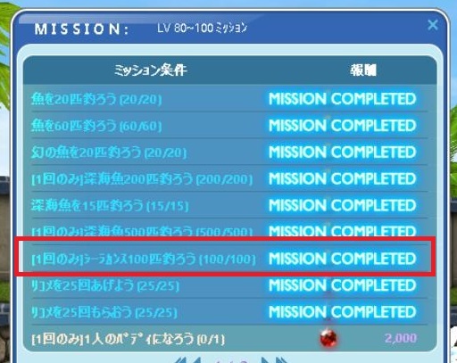 | Missionの100匹クリアおめでとうございます^^ |