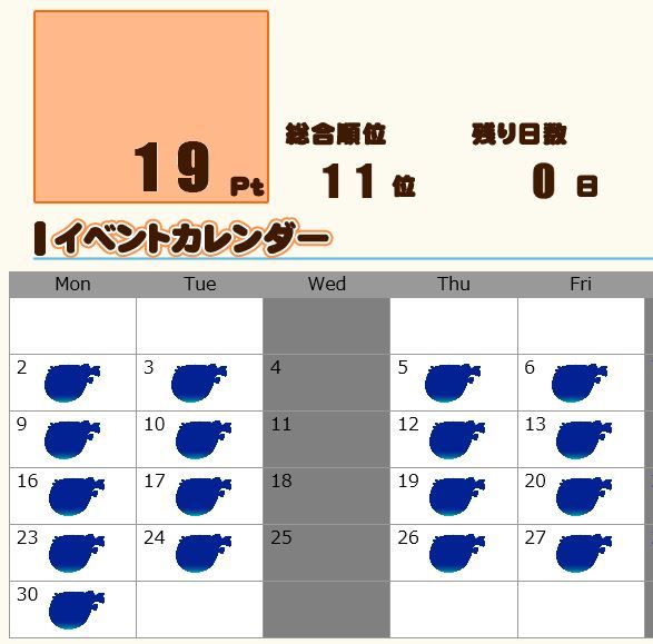 イベ王皆勤賞(ノ´∀`)ノぉめでとぉ☆後1ポイント残念でしたね。