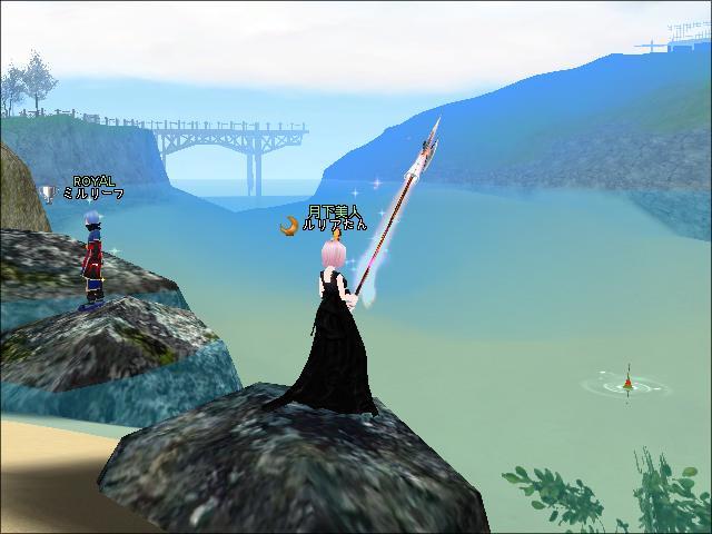 夜、ギルメンさんと釣りをしたわ。