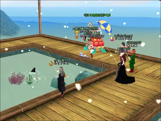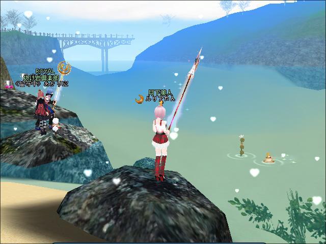 夜、ギルメンさんと釣りをしたわ。