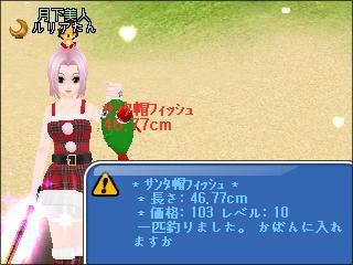 いつものサンタ帽フィッシュしか釣れなかった……けど、下2桁奇数ぞろ目や、