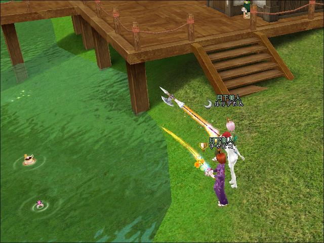 夜、ギルメンのチャピコさんと釣りをしたわ。