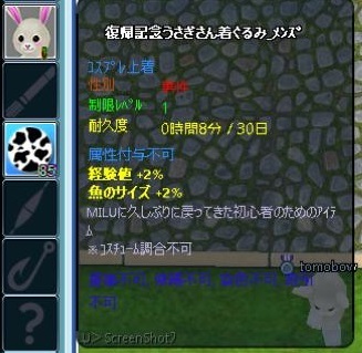 6日から別ゲームで重要なイベントがあったので MILUの方はおろそかになってました そんな中 昨日 ぼくがずっと愛用してきた うさぎのきぐるみが 最期の時を迎えました