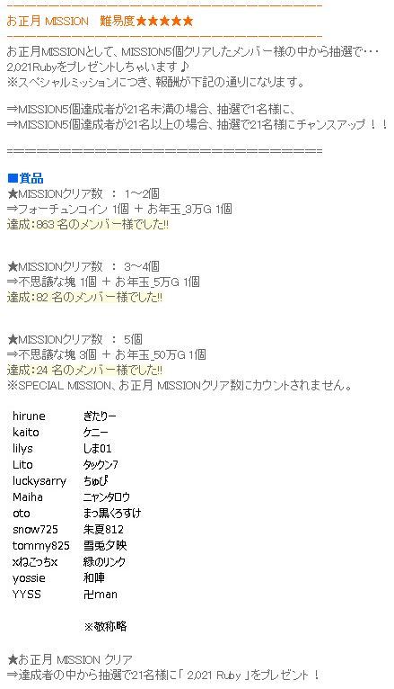 | ミッションクリアー&ルビーゲット(*´∀`ノノ゙【 ゚+。:.゚ぉめで㌧゚.:。+゚ 】最後のSSこわいw |