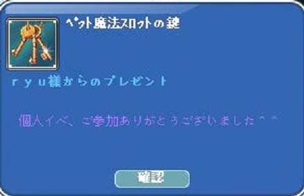 | ペット鍵をゲット!おめでとうございます☆(・∀・)イイナ~!! |