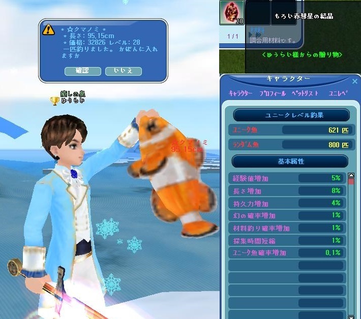ランダム魚通算800匹ゲット。運営から景品いただきました!ありがとう^^