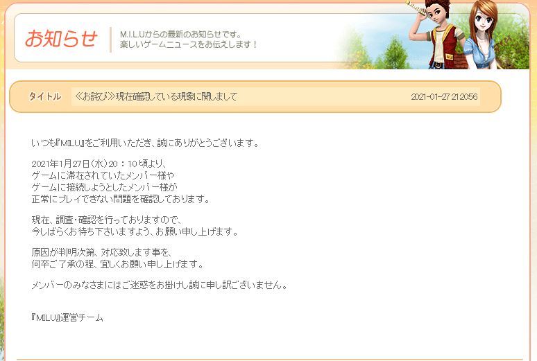 さすがに、何かあったのかなと、公式ページを覗いてみると、不具合状況が出ていました。