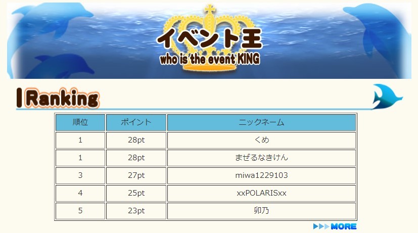 イベ王、優勝ヽ(〃'▽'〃)ノ☆゜'・:*☆オメデトォ♪ |