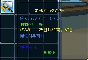 まだレベル80なのですがレベル86のゴールドビッグアンカーという竿を(σ・∀・)σゲッツ!!