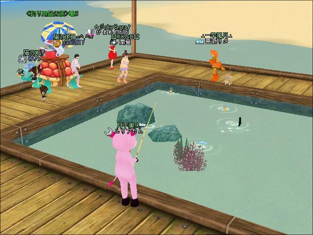 夜、ギルメンのチャピコさん、tukimokurenさんと釣りをしたわ。