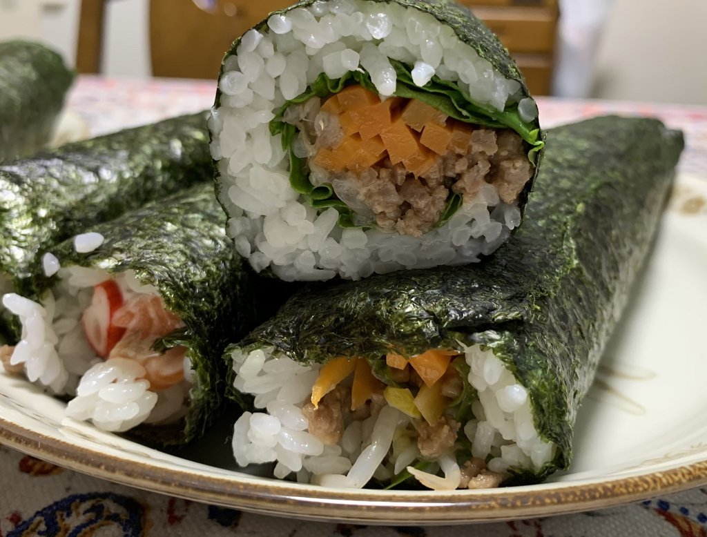 初めて 最初から自分で恵方巻きを作ってみました (゜∇^*) テヘ