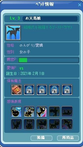 昨日、ペットのお天馬娘ちゃんがLv3にUPしました。