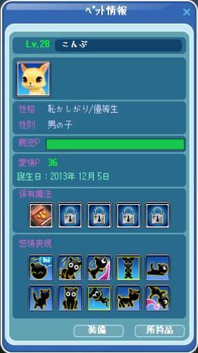 ペット2匹レべアップしました^^ ”こんぶ”こときつねが28レべに^^