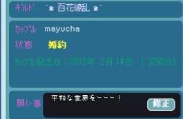 14日はカップル記念日でしたwSS、ぼけてますけど 2012年2月14日(3290日)とwwwwwwwww
