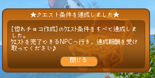 お疲れでぃす(_´Д`)ノ~~オツカレー 早速、掘れチョコ調合クエ、一発で達成(^^)v