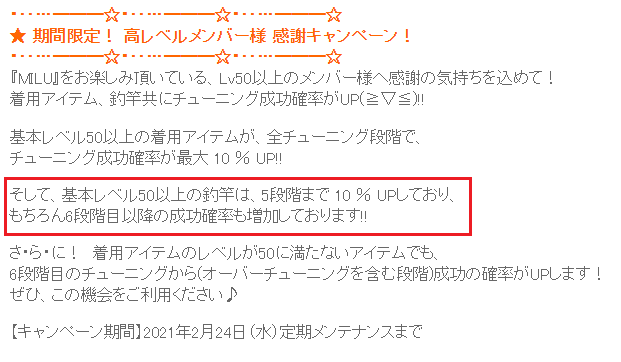 Lv70竿のチューンには最適なキャンペーン・・・ありがとう~運営さん~♬