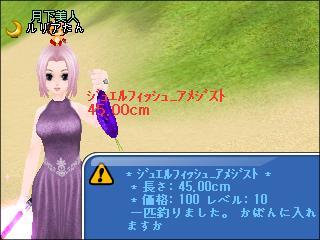 | 早朝からお疲れさまー。レア魚ハートジュエルフィッシュアメジスト、おめでとう^^ |