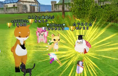 お昼になったでご飯を食べにーーーー離席の離席のヒスイの隣で踊ったまま離席する(⌒▽⌒)アハハ
