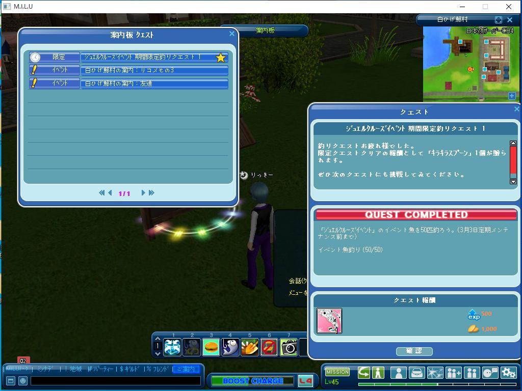 こちらが、その完了した、イベント釣りのクエストです。