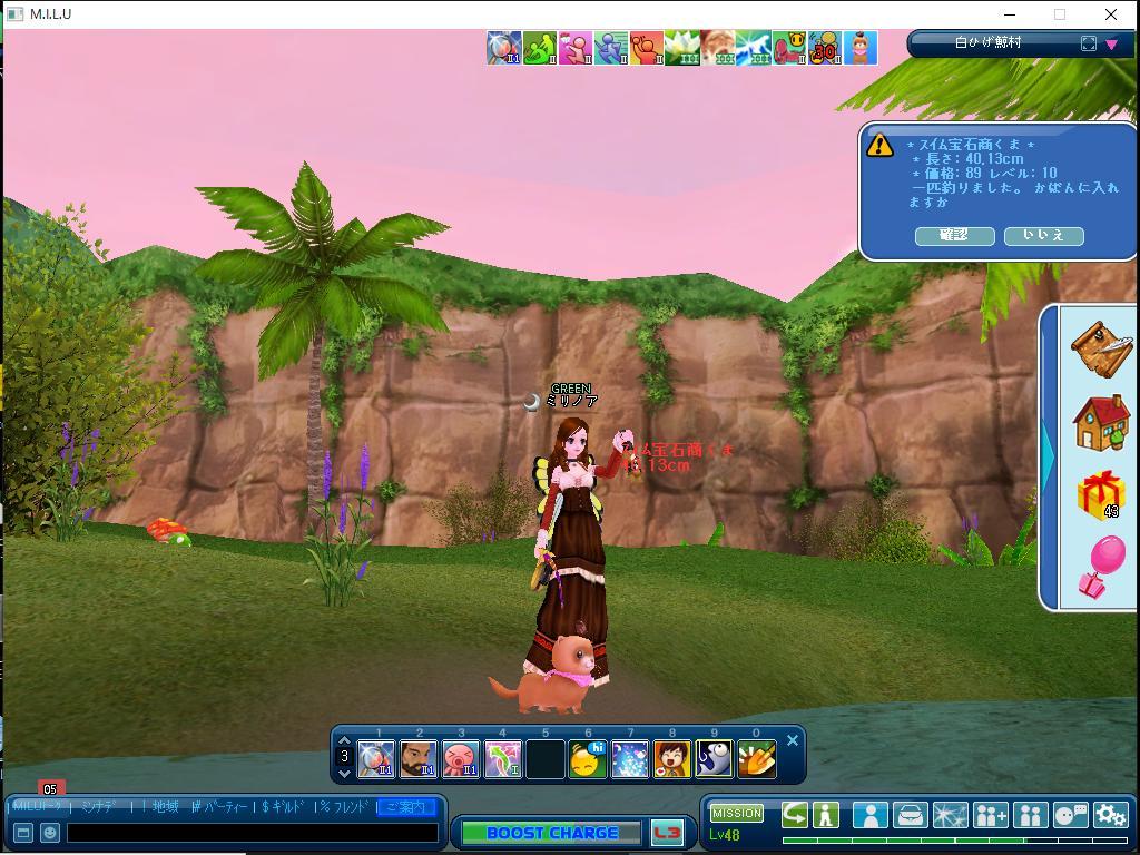 またまた宝石商くま釣りました。(*´▽`*)♬ 普通の鍵が出るとおもったら、かがやく宝石の鍵が、でてきましたー。早速、かがやく調合書を買い、マジカルしたら100万円でましたー。わーい(*´▽`*)♬