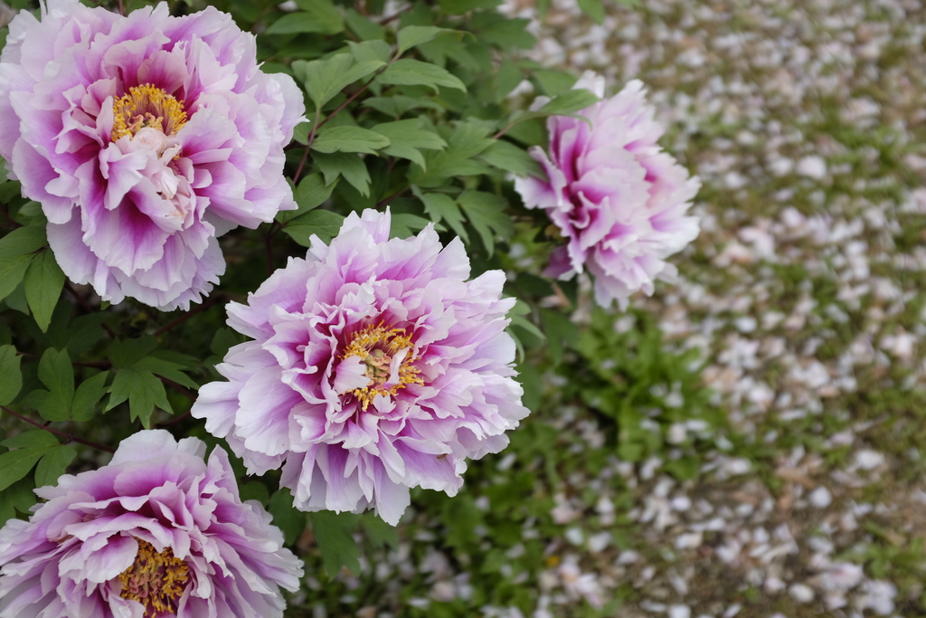 咲いてるのは見ごろだと思うんだけど、地面に落ちてるのもボタンの花びらなのだろうか?? |