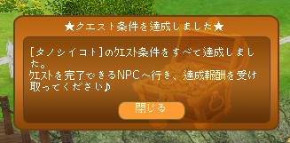 クエスト達成((*・ω・ノ)ノ【オメデトー】またあそんでくださいね(^^♪ |