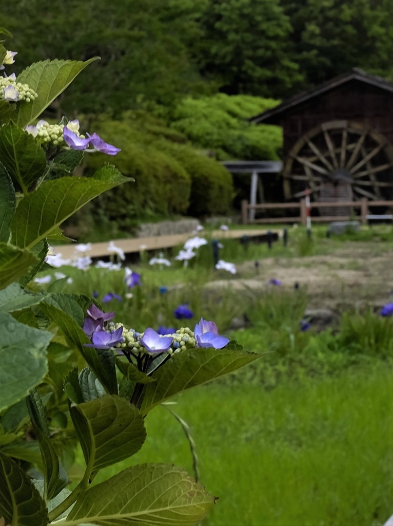 | 紫陽花と水車小屋、なんか癒される場所ですね(o^―^o)ニコ |