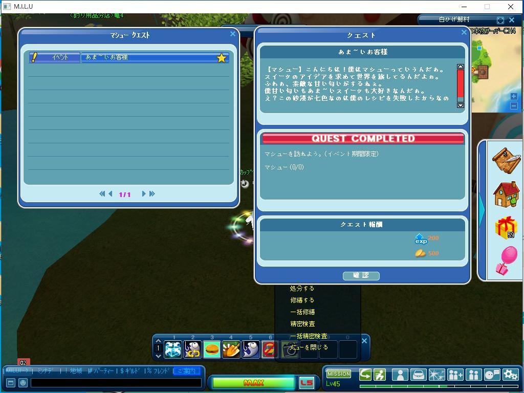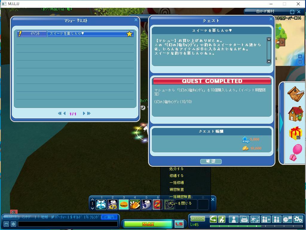 以上が、完了したイベント釣りのクエストです。