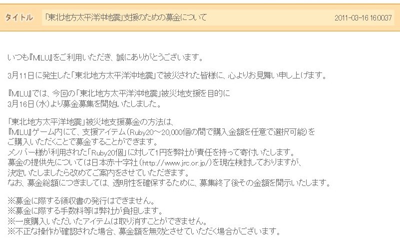 MILUでも課金による募金受付があったのは凄かったね