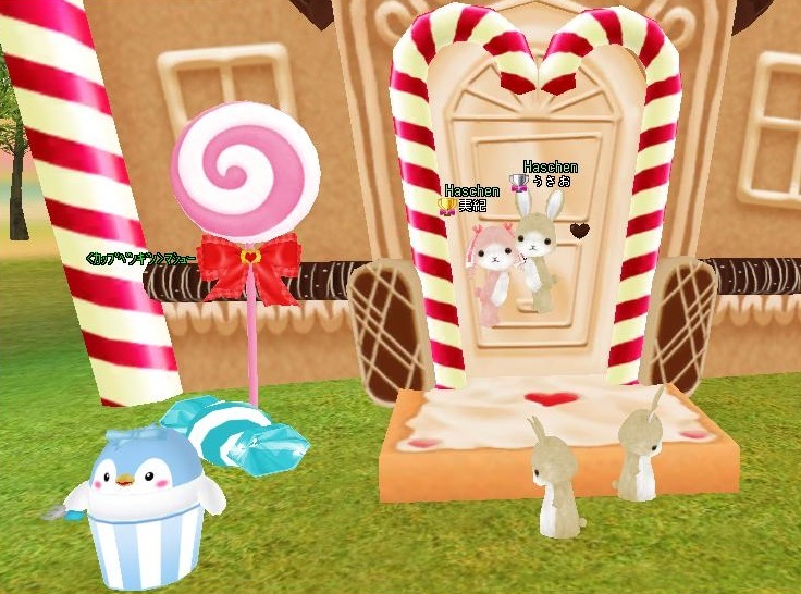 お菓子の家の前で、